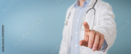 Doctor touching virtual interface with his finger