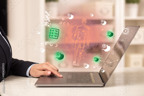 Doctor working on laptop with healthcare concept