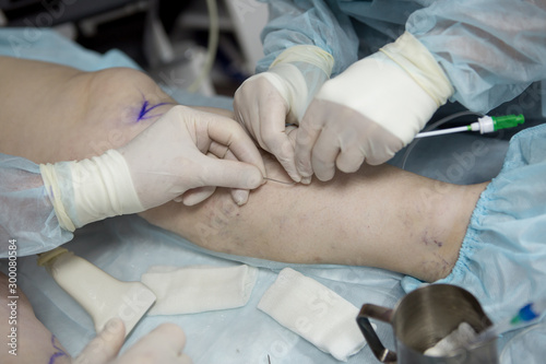 Doctors doing vein surgery procedure