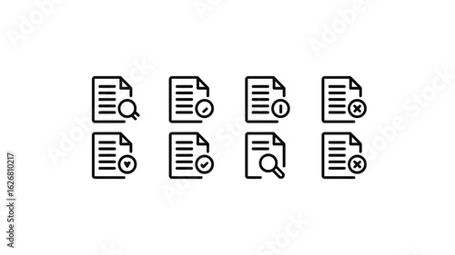 Document Icons Set: File Management, Search, Error, Approved, and Rejected Actions for Web Design and Mobile Apps - Vector Illustration