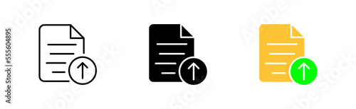 Document with upload button line icon. Arrow up, remote storage, server, cloud, website, online, control, documentation, digital. Vector icon in line, black and colorful style on white background