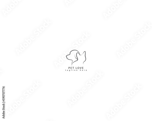 Dog and cat logo design template vector, line of pet logo design suitable for pet shop, store, cafe, business, hotel, veterinary clinic, Domestic animals vector illustration logotype, sign, symbol.