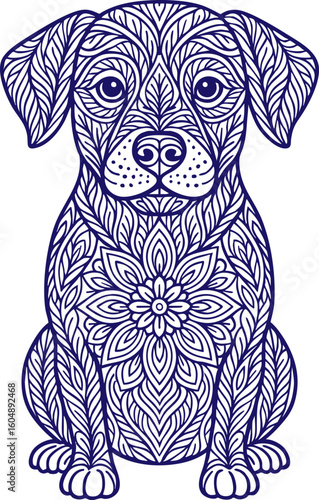 Dog illustration with mandala floral patterns