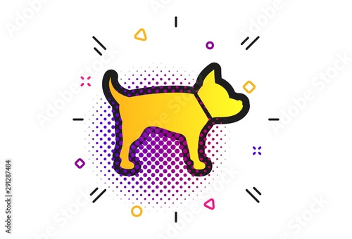 Dog sign icon. Halftone dots pattern. Pets symbol. Classic flat dog icon. Vector