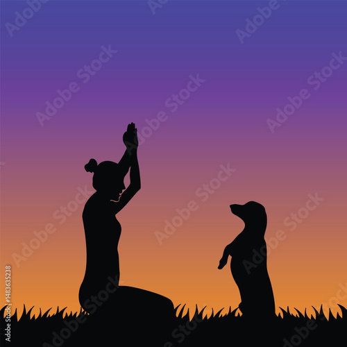 Dog Training Silhouette at Sunset