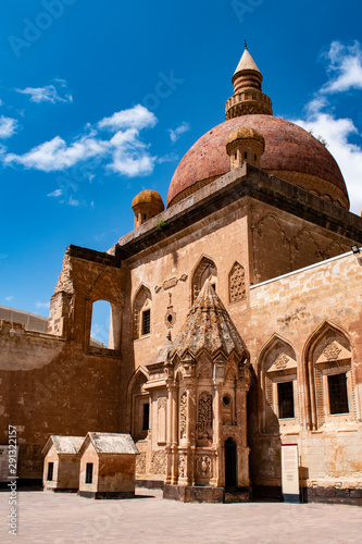 Dogubayazıt, Turkey: the courtyard with the Tomb and main dome of Ishak Pasha Palace, semi-ruined palace of Ottoman period (1685-1784), one of the most magnificent historical buildings of the country