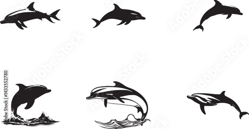 Dolphin Silhouettes A Collection of Jumping and Swimming Marine Mammals
