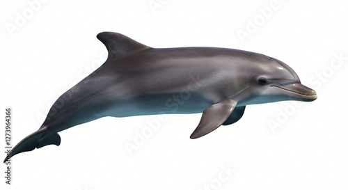 Dolphin Swimming Smoothly Underwater with Clear White Background for Easy Isolation