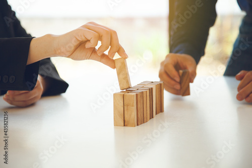 Domino's business people join together. In order to build a business to thrive And jointly reduce business risk strategies by stopping domino business ideas