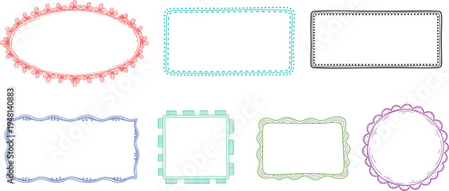 Doodle hand drawn frame set colorful borders minimal square arch rectangle shapes kit elegant retro empty banners posters