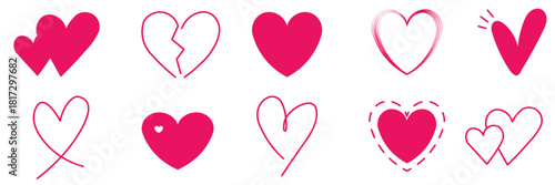 Doodle simple different hearts set. Hand drawn hearts icon collection. Heart doodles set. Collection of hand drawn heart doodles in different styles.