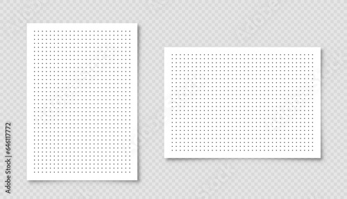 Dotted graph paper with grid. Polka dot pattern, geometric texture for calligraphy drawing or writing. Blank sheet of note paper, school notebook. Vector illustration