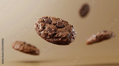 Double chocolate cookie floating mid-frame, sharp shadows and highlights generative ai
