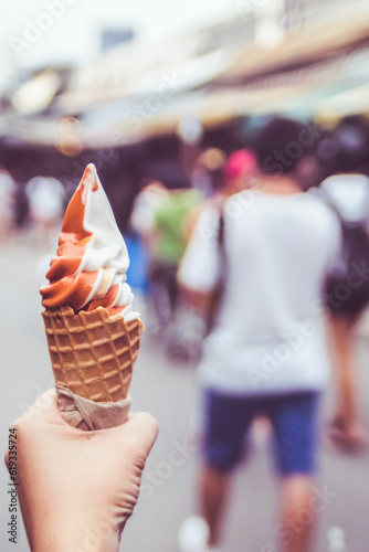 Double Delight: Hand Holding Two-Tone Ice Cream