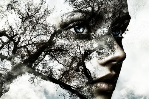 Double Exposure Woman and Trees