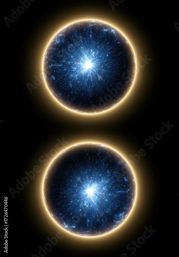 Double Glowing Globe with Blue Intricate Network Against a Transparent Background