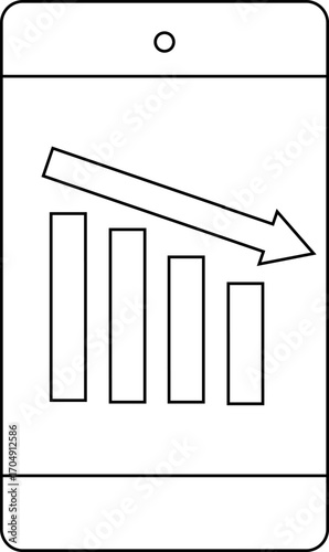 down graph icon and smartphone icon with white background