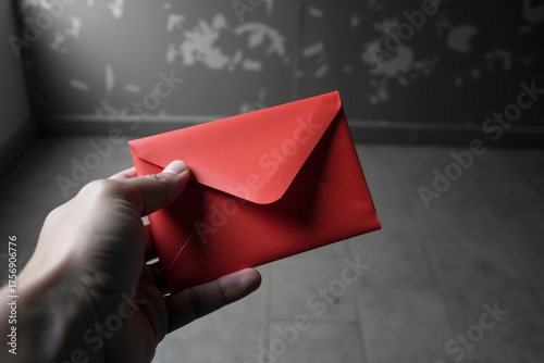 Drab Image: Hand Clutching Red Envelope in Grungy Setting