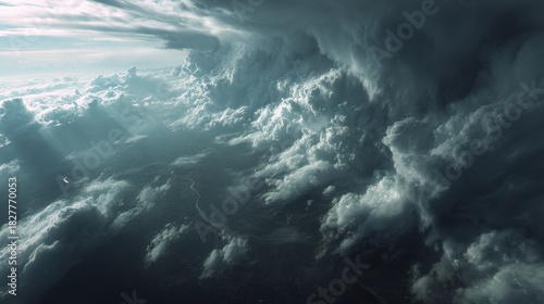 Dramatic Aerial View of Storm Clouds, Moody Sky, Atmospheric Perspective, Dark Tones.