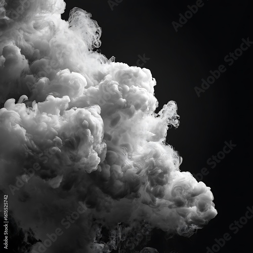 Dramatic black and white smoke cloud isolated on white background