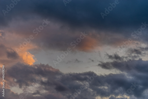 dramatic clouds at the evening blue sky in autumn