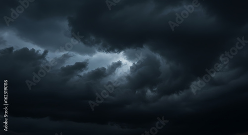 Dramatic dark storm clouds with a flash of lightning