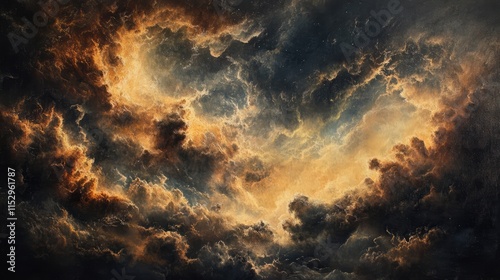 Dramatic evening clouds illuminated by golden light showcasing a turbulent sky in a mesmerizing natural display.