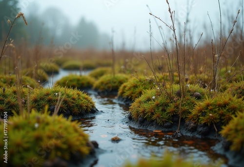 Dramatic Fen Alkaline Wetland Showcase with Peat Soil and Spaces of Unique Botanical Life