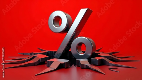 Dramatic metallic percentage symbol on cracked red background