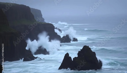 Dramatic Ocean Waves Crashing Against Rugged Cliffs