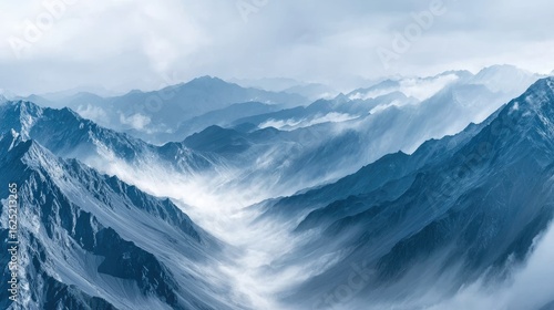 dramatic sky, glowing alpine light, vast panoramic view, untouched wildernessv