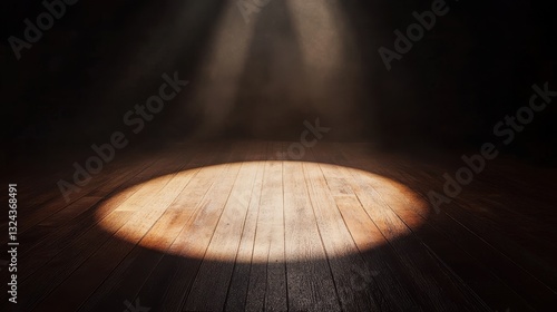 Dramatic spotlight illuminating wooden stage in theatrical setting