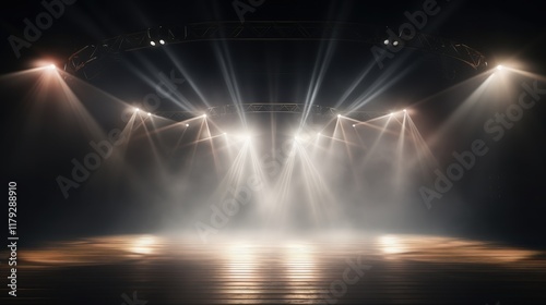 Dramatic Stage Lighting with Beams and Smoke for Live Events and Performances in a Dynamic Atmosphere