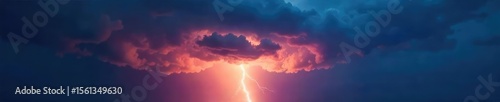 Dramatic Storm Cloud Illuminated by Lightning Bolt, Vibrant Electric Sky, Powerful Nature Photography