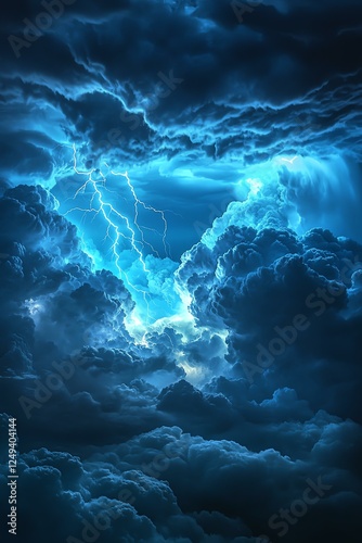 Dramatic storm clouds illuminated by striking lightning.
