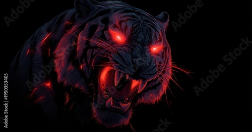 Dramatic tiger illustration with glowing red eyes and intense expression