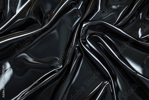 Draped black fabric with glossy texture and smooth, flowing folds.