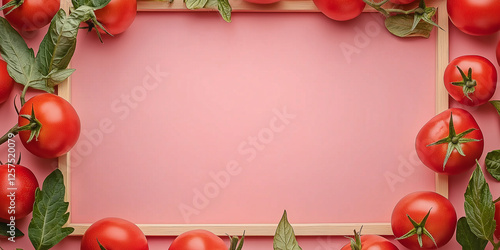 Draufsicht auf einen Rahmen mit Tomaten und mit Platz für Text in der Mitte - Werbeschild