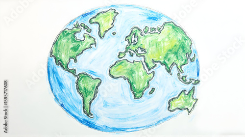 Drawing of World Globe with Continents and Oceans