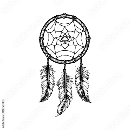Dream catcher with feathers silhouette vector
