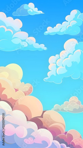 Dreamy Fluffy Clouds in a Pastel Blue Sky with Soft Gradient