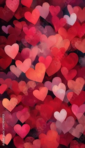 Dreamy Heart Pattern in Gradient Red Hues - Love-Themed Abstract Artwork