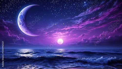 Dreamy Night Sky with Gentle Mist Surrounding the Moon