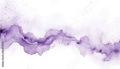 Dreamy watercolor illustration features delicate purple spray, fluid ink patterns. Soft pastel violet hues create airy, ethereal gradient effect with subtle dust particles. Minimalist decorative