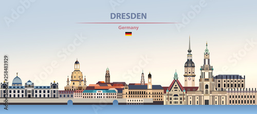Dresden city skyline vector illustration on colorful gradient beautiful day sky background with flag of Germany