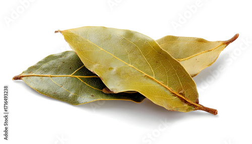 Dried bay leaves isolated on white background, side view