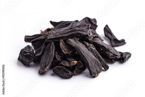 Dried wolfberry from traditional Chinese black herbs on a white backdrop