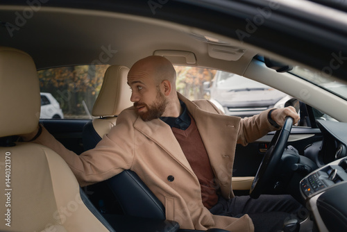 Driver looking behind while reversing a car, demonstrating focus and responsibility