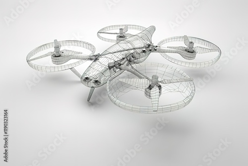 Drone concept. elegant rendering of 3d. Wire-frame style. The layers of visible and invisible lines are separated