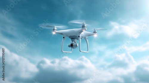 Drone flying over bright blue sky aerial photography outdoor high-resolution gigapixel view drone technology concept